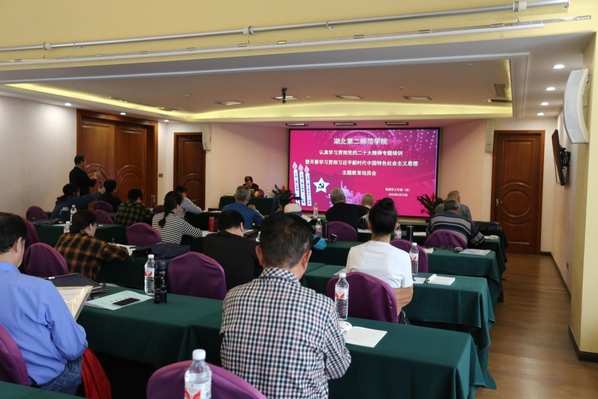 全体党员在七里坪党员干部教育基地召开了离退休工作部关于“学习贯彻习近平新时代中国特色社会主义思想主题教育活动”动员大会。会议由杜勇同志主持。余文静同志传达了此次主题教育活动相关文件精神,施应贵同志作了动员讲话并以《党的二十大报告解读—新时代未来五年发展目标》为题讲党课,四位离退休支部支委代表分享了党的二十大精神学习体会。