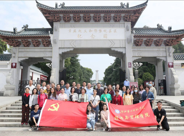 本网讯(通讯员 卢静雯 赵奕晗)5月25日,经济与管理学院(以下简称经管学院)党委组织师生代表前往黄冈市红安县红色教育基地开展“传承红色基因,延续红色血脉”红色教育实践活动,深入学习革命先烈们以国家和人民利益为己任、舍身报国的崇高精神。“师友·学友行动”部门财务处处长王诗龙、经管学院班子成员和师生代表参加了本次活动。
