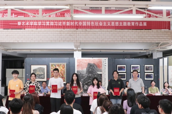 本网讯(通讯员 曹珊)6月15日,学校在艺术学院九号楼展厅开展第八届卓尔艺杯校园师生作品展暨学习贯彻习近平新时代中国特色社会主义思想主题教育作品展,校党委副书记胡兴、副校长田恒平出席活动。